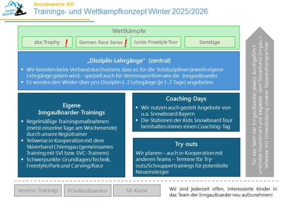 Die InngauBoarder werden vom Skiverband Inngau die Wintersaison 2025/2026 eng betreut – und zwar bei Trainingsmaßnahmen und bei zahlreichen nationalen Wettkämpfen. Hier ein kleiner Einblick, was wir uns für den Winter vorgenommen haben.