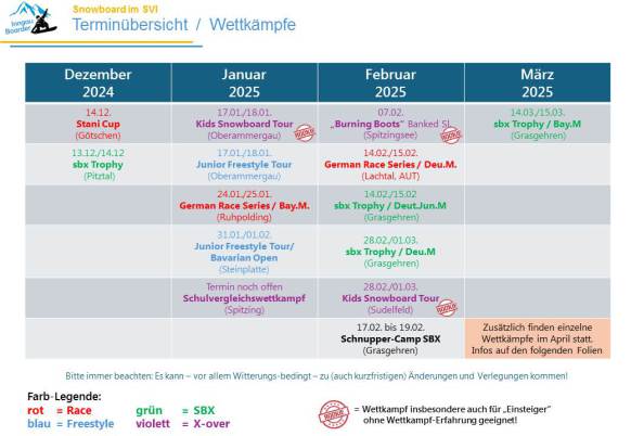 Der Skiverband Inngau sieht sich als Interessenvertreter für alle Snowboarder und Snowboarderinnen in der Region und bietet euch eine Plattform, über die ihr euch über Trainingsmöglichkeiten und Wettkämpfe informieren und auch an diesen teilnehmen könnt; und zwar unabhängig davon, ob ihr (schon) in einem Verein aktiv seid oder nicht.