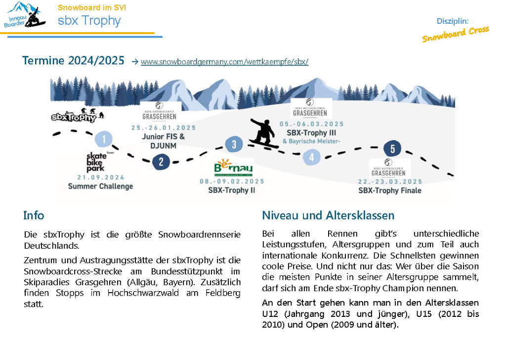 Auch in diesem Jahr wird es mehrere „Coaching Days“ mit Trainern von Snowboard Bayern geben. Diese Termine stehen aber noch nicht fest und werden dann kurzfristig auf der SVI-Website veröffentlich- und über unseren Newsletter bekanntgegeben.